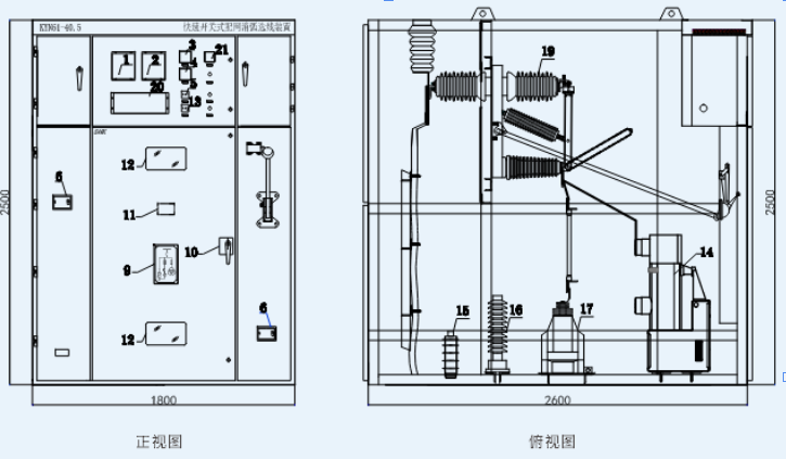 户内式10kV柜体结构及参考尺寸见下图